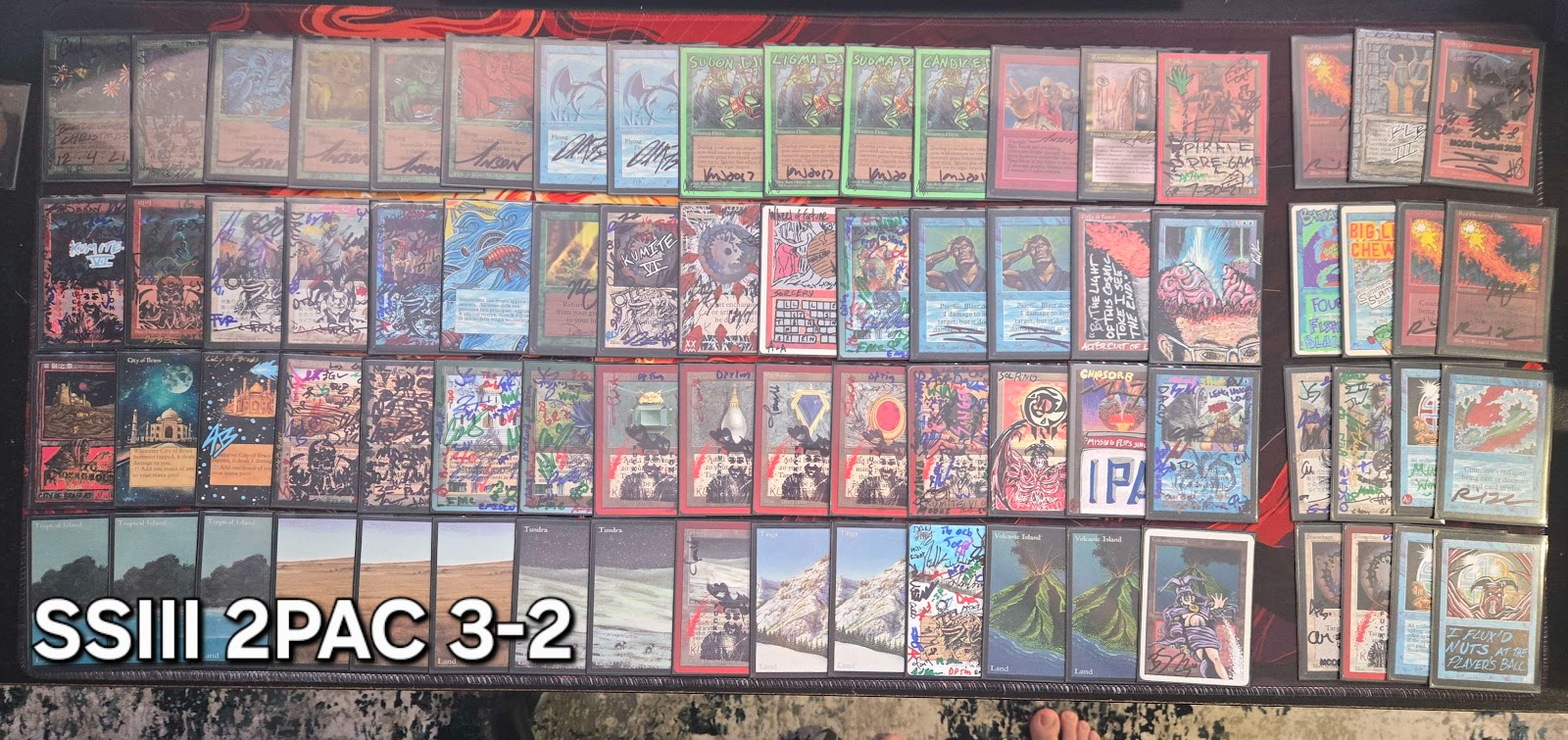 The Nashville club tends toward Eternal Central-style Old School alongside our local brew, Alpha to Alliances (A2A), but for reasons obscure even to us, at this event we opted for 2Pac. Was that good or bad? Well, I drove to the woods to sleep on camping gear in a laundry room and quote Dracula Flow, so why would you trust my value judgment about a complex array of subjective aesthetics and combinatorial math, where success is measured mainly in ancient drawn-on cardboard? The format is fine. The format is probably better than Swedish.
