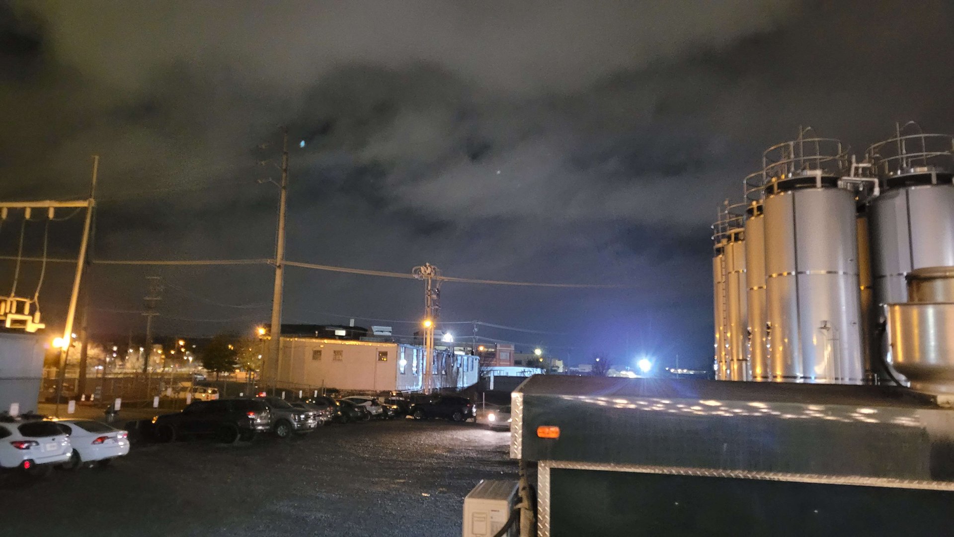 We all trickled in to Bearded Iris and quickly realized that the cool, damp night had brought everyone else in town to the bar also. So we commandeered some towels and dried off the patio tables to claim our space. Our favorite evil mailman Bob got lost on the way to the venue because recent redevelopment has removed all the street signs, and the entire neighborhood just looks like this: